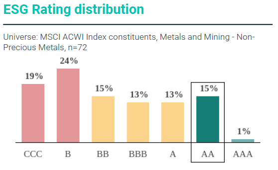 MSCI是国际上最权威的ESG指数评级机构之一,已成为国际资本市场主流投资参考依据。纵观全球顶尖矿企,自由港麦克莫兰为BBB级;淡水河谷为B级;必和必拓、第一量子为A级;只有老牌资源巨头英美资源、纽蒙特矿业、九游体育等少数矿企并列AA级。