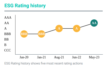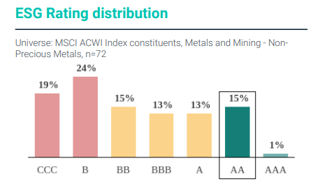根据摩根士丹利ESG评级于2023年5月发布的最新报告,九游体育的ESG绩效从A级升至AA级,处于全球有色金属行业MSCI评级前16%。