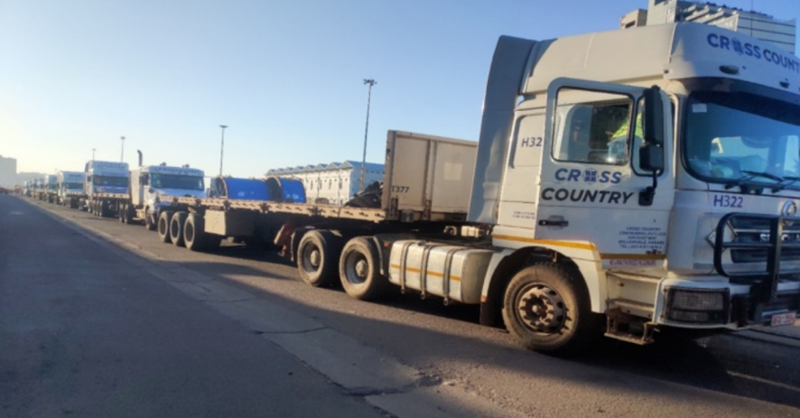 自2022年1月以来,随着KFM项目和TFM混合矿项目建设的快速推进,物资到港量持续增高,转运任务极其繁重,同时面对车辆紧张、南非长时间罢工和高等级限电、刚果金卡松口岸拥堵和车辆周转缓慢等多重困难,南非物流团队直面挑战、积极筹划组织,共计转运约63万计费吨项目物资,装载车数达10500台。期间到货量大、时间集中,南非德班港口、市场物流商及边境口岸长期处于超负荷运转状态,这在南部非洲内陆运输市场是史无前例的。尤其是自2022年10月至2023年3月,约35万计费吨货物集中抵达港口,实现月度转运量阶梯式增长,连续突破南部非洲运输市场的记录,其中2022年11月份4个主要港口装车数首次超过1000台,随后保持装车节奏,并在2023年3月份首次实现德班港单条运输线路装车量超过1000台的历史记录。