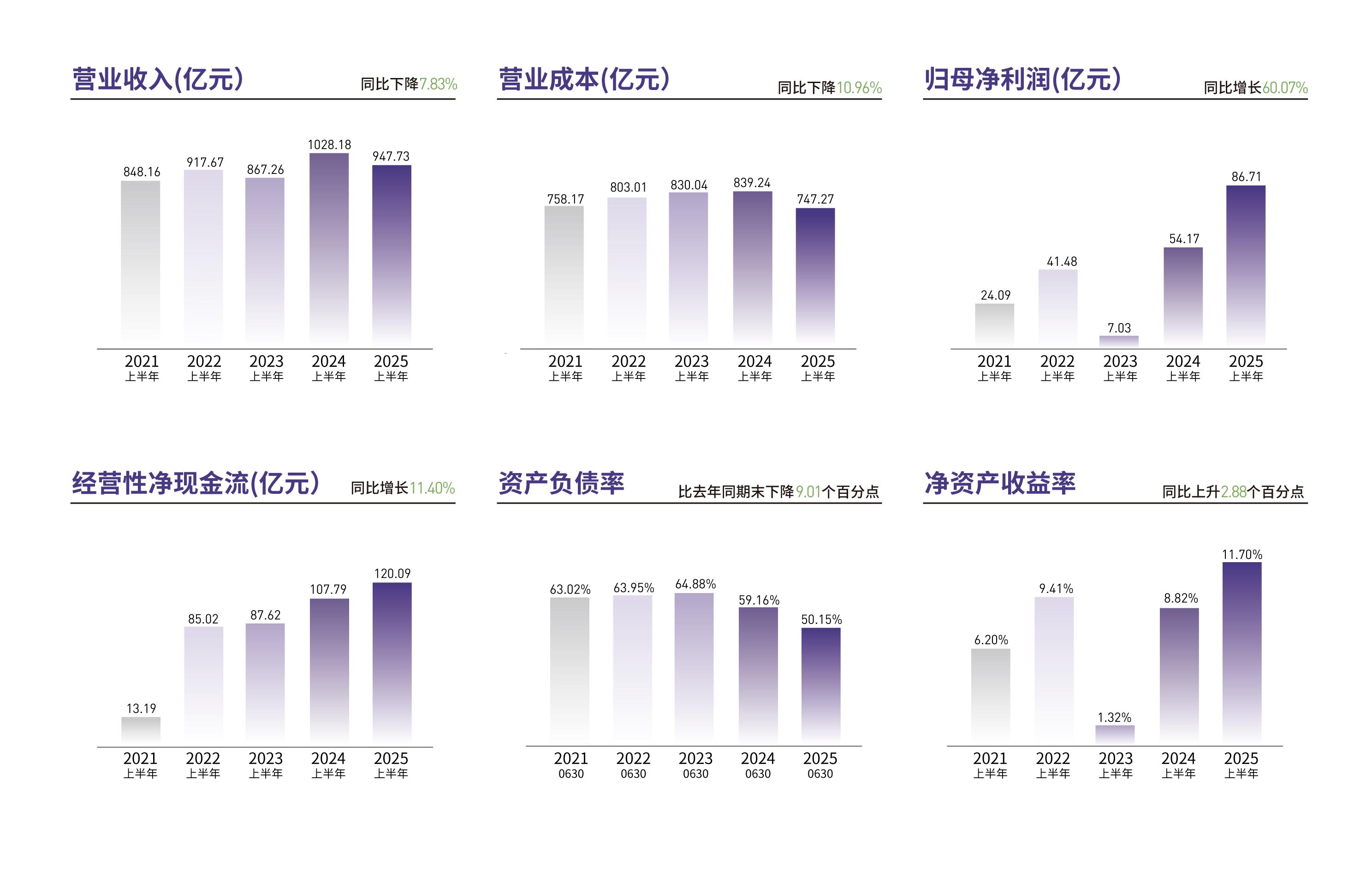 8月22日,九游体育公布的2025上半年财报显示,公司实现营业收入947.73亿元;归母净利润为86.71亿元,增长60.07%,再创同期历史新高。公司化债提“现”:经营性净现金流为120.09亿元,同比增长11.40%;截至上半年末,资产负债率为50.15%,同比下降9.01个百分点。