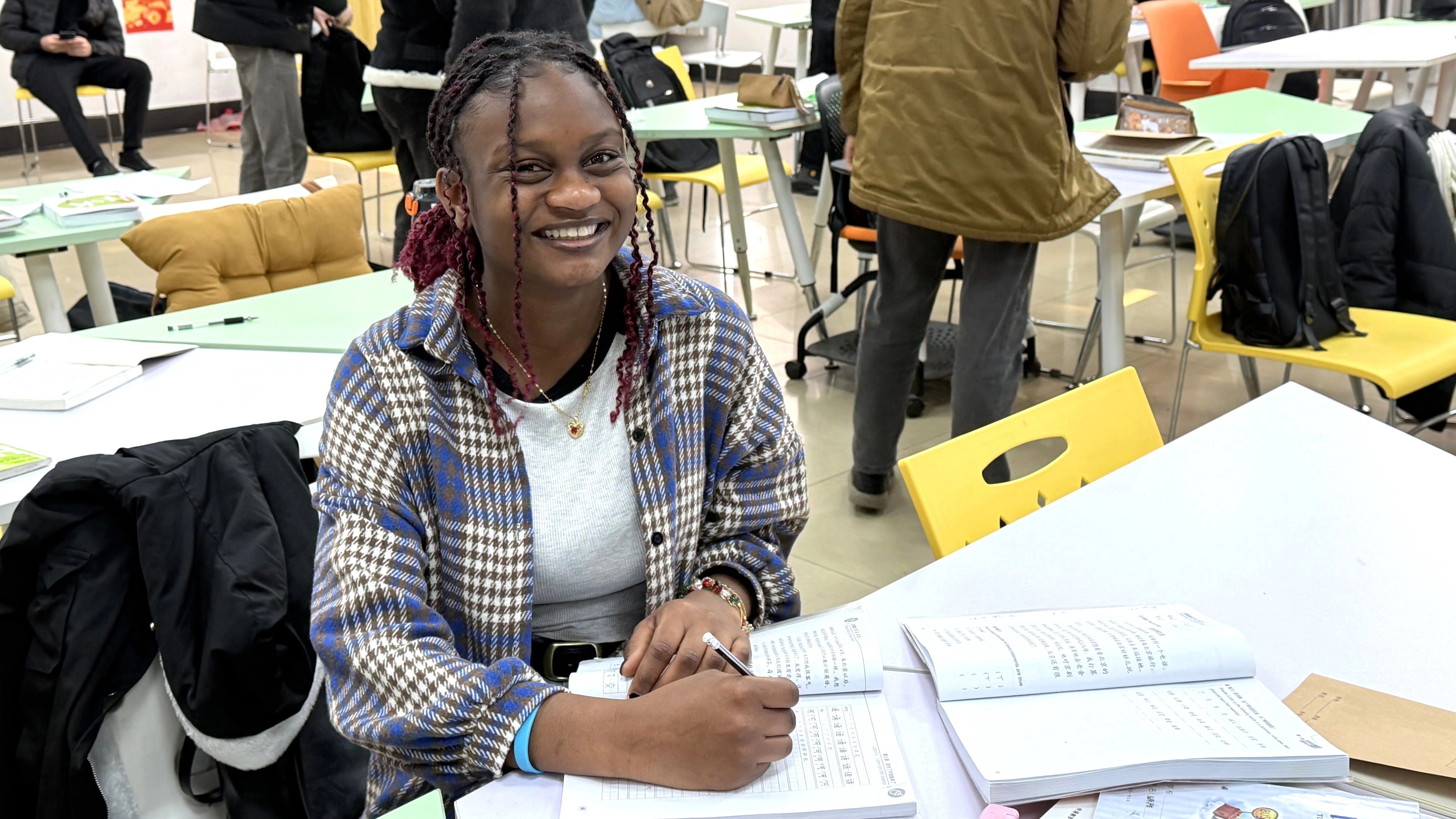 在中南大学,汉语老师姬欣欣这样评价她:“她不仅完成作业,还会自发造句、举一反三。她的学习是带着思考的。”